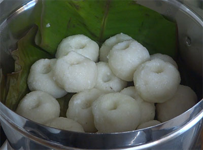 ಹಿಟ್ಟು ಸ್ವಲ್ಪ ಆರಿದ ಮೇಲೆ ಒಂದು ಸಣ್ಣ ಪಾತ್ರೆಯಲ್ಲಿ ನೀರಿಟ್ಟುಕೊಂಡು ಕೈಗೆ ನೀರು ಹಚ್ಚಿಕೊಳ್ತಾ ಹಿಟ್ಟನ್ನು ಚೆನ್ನಾಗಿ ನಾದಬೇಕು. ನಂತರ ಕಡುಬಿನ ಉಂಡೆಗಳನ್ನು ಕಟ್ಟಲಾಗುತ್ತದೆ. ಅಷ್ಟರಲ್ಲಿ ಒಲೆಯ ಮೇಲೆ ಸರಗೋಲು ಎಂಬ ಪಾತ್ರೆಗೆ ನೀರು ಹಾಕಿ ಕುದಿಯಲು ಇಟ್ಟಿರುತ್ತಾರೆ. ಕಡುಬಿನ ಉಂಡೆಗಳನ್ನು ಕಟ್ಟುವಷ್ಟರಲ್ಲಿ ನೀರು ಕುದಿಯಲಾರಂಭಿಸುತ್ತದೆ. ಸರಗೋಲಿನಲ್ಲಿ ಎರಡು ಸ್ತರಗಳಿರುತ್ತವೆ. ಕೆಳಗಿನ ಸ್ತರದಲ್ಲಿ ನೀರು ಕುದಿಯುತ್ತಿದ್ದರೆ ಮೇಲಿನ ಸ್ತರದಲ್ಲಿ ಅಂತ್ರ ಎಂಬ ಹಬೆ ಮೇಲೆ ಬರಲು ರಂಧ್ರಗಳಿರುವ ತಟ್ಟೆಯಿರುತ್ತದೆ. ಅದರ ಮೇಲೆ ಕಟ್ಟಿದ ಕಡುಬಿನ ಉಂಡೆಗಳನ್ನು ಹಾಕಿ ಮೇಲಿನ ಮುಚ್ಚಳ ಮುಚ್ಚಿಟ್ಟರೆ ಇಪ್ಪತ್ತು ನಿಮಿಷಗಳಲ್ಲಿ ಕಡುಬು ಬೆಂದು, ತಿನ್ನಲು ತಯಾರಾಗುತ್ತದೆ. ಕಡುಬು ಬೇಯುವಷ್ಟರಲ್ಲಿ ಕಾಯಿ ಚಟ್ನಿಯೂ, ಬೆಣ್ಣೆ ಕಾಯಿಸಿ ತುಪ್ಪವೂ ತಯಾರಾಗುತ್ತದೆ. ಹಿಂದಿನ ರಾತ್ರಿ ಮಾಡಿದ ಸಾರು ಉಳಿದಿದ್ದರೆ ಅದೂ ಚೆನ್ನಾಗಿ ಕಡುಬಿನೊಂದಿಗೆ ಹೊಂದುತ್ತದೆ.