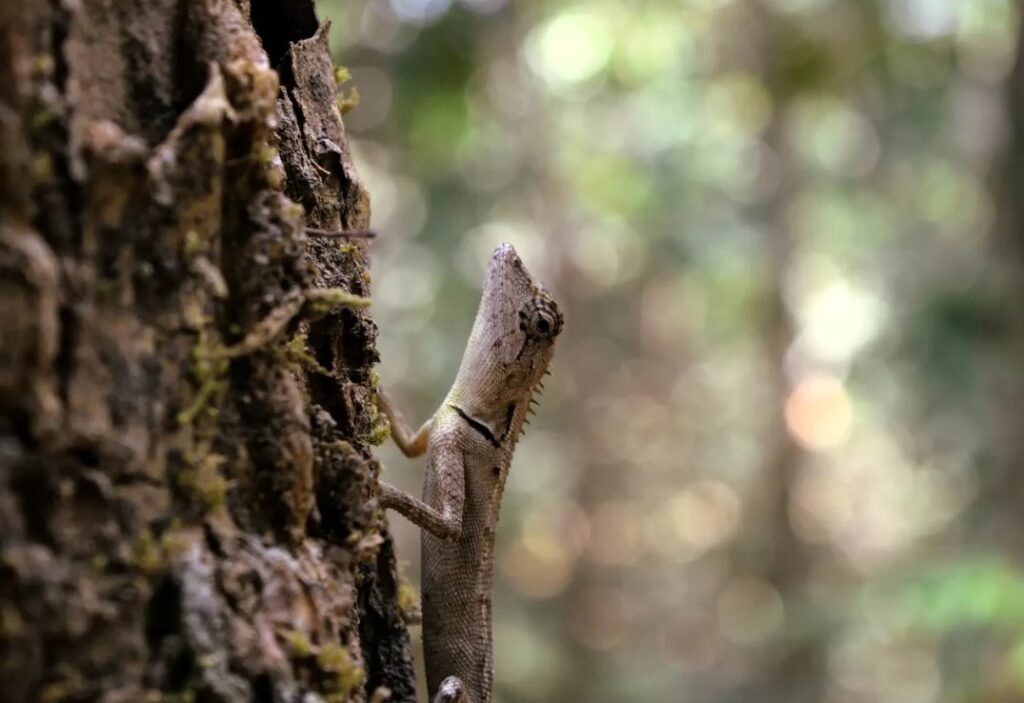 ಇರುವೆಯಿಂದ ರಕ್ಷಿಸಿಕೊಳ್ಳಲು ಆ ಪ್ರಾಣಿ ಇದ್ದಕ್ಕಿದ್ದಂತೆ ಪಕ್ಕದ ದೊಡ್ಡ ಮರಕ್ಕೆ ಹಾರಿ ಮರ ಕೂತು ತನ್ನ ದೇಹಕ್ಕೆ ಅಂಟಿಕೊಂಡಿದ್ದ ಕೆಂಪಿರುವೆಗಳನ್ನು ತಿನ್ನತೊಡಗಿತು. ಇದು ಕಂಡು ಆಶ್ಚರ್ಯ ಚಕಿತರಾದ ಲೇಖಕರು ಹಾರೋ ಓತಿಕ್ಯಾತ ಇದು ಎಂದು ಖಾತ್ರಿಯಾದ ಖುಷಿಯಲ್ಲಿ ತನ್ನ ತಂಡದವರನ್ನು ಕೂಗಿ ಕರೆದರು. ಆದರೆ ಹಾರುವ ಓತಿಕ್ಯಾತ ಇದ್ದಲ್ಲಿ ನಿಲ್ಲುತ್ತದೆಯೇ? ಲೇಖಕರು ಅದನ್ನೇ ತದೇಕ ಚಿತ್ತರಾಗಿ ಕಣ್ಣಲ್ಲೇ ಹಿಂಬಾಲಿಸುತ್ತ ತಾವು ಕಂಡ ಈ ಅದ್ಭುತ ಸರೀಸೃಪವನ್ನು ತನ್ನ ತಂಡದವರಿಗೆ ಪರಿಚಯಿಸುವ ಆತುರದಲ್ಲಿದ್ದರು…