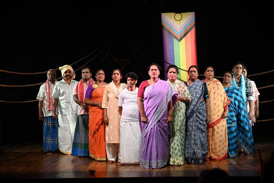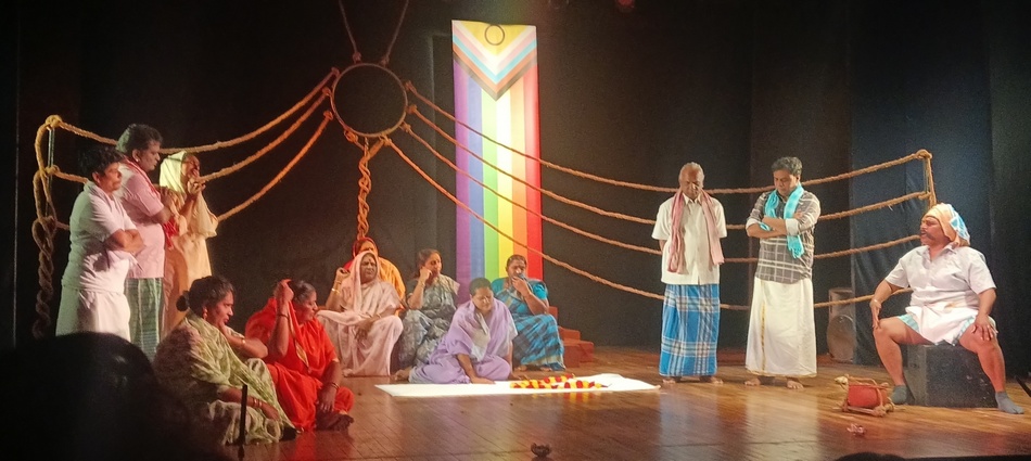 ಸಿನಿಮಾ ನಟರನ್ನು ಮೆಚ್ಚಿಕೊಳ್ಳುವುದು. ಅವರ ಹಾಡುಗಳ ಗುಣಗಾನ, ಪ್ರೀತಿ ಪ್ರೇಮವನ್ನು ಕಟ್ಟಿಕೊಡಲಾಗಿದೆ. ತಾವು ಪ್ರೀತಿಸಿದ ಹುಡುಗ ಹುಡುಗಿಯರು ಹೇಗೆ ತಮ್ಮನ್ನು ಮೋಸಗೊಳಿಸಿದರೆಂದು ಅನಾವರಣಗೊಳಿಸಿದರು. ಮನೆ ಮಾರು ಬಿಟ್ಟು ಬಂದ ಜೀವಕ್ಕೆ ಆಸರೆ ಆಗುತ್ತೇನೆಂದು ಹೇಳಿ ನಿರಾಶ್ರಿತನನ್ನಾಗಿ ಮಾಡಿದವರಿಗೆ ಯಾವ ಶಾಪವನ್ನು ಇವರು ಹಾಕಲಿಲ್ಲ. ತಮ್ಮನ್ನು ಈ ಸಮಾಜ ಒಪ್ಪಿಕೊಂಡರೆ ಸಾಕೆಂಬ ಧೋರಣೆಯಲ್ಲಿಯೇ ಇಂದಿಗೂ ಬದುಕು ಕಳೆಯುತ್ತಿದ್ದೇವೆ ಎಂಬ ಇವರ ಆತ್ಮಸ್ಥೈರಕ್ಕೆ ಸಾಟಿಯೇ ಇಲ್ಲ. ಆರಂಭದಲ್ಲಿ ಗಂಡು ಹೆಣ್ಣಾಗದೆ, ಹೆಣ್ಣು ಗಂಡಾಗದೆ ಇರುವುದನ್ನು ಒಪ್ಪಿಕೊಳ್ಳದೆ ಇದ್ದರೂ ನಾಟಕದ ಕೊನೆ ಗಳಿಗೆಯಲ್ಲಿ ಗಂಡು ಹೆಣ್ಣಾಗುವುದನ್ನು ಒಪ್ಪಿಕೊಳ್ಳುವುದರ ಚಲನೆ ಬದಲಾವಣೆಯನ್ನು ಸೂಚಿಸುತ್ತದೆ. ಅವರ ಕಥೆಗಳಲ್ಲಿನ ಸಾವು ಕೂಡ ಅವರ ಅಸ್ತಿತ್ವವನ್ನು ಪ್ರತಿಪಾದಿಸುತ್ತದೆ. ಒಬ್ಬರಾದ ಮೇಲೆ ಒಬ್ಬರು ತಮ್ಮ ಕಥೆಗಳನ್ನು, ನೋವುಗಳನ್ನು ಅಭಿವ್ಯಕ್ತಿಸುವ ಕ್ರಮವೇ ವಿಶಿಷ್ಟವಾಗಿತ್ತು. ವೃತ್ತಿಪರ ನಟರಲ್ಲದಿದ್ದರು ಆಸಕ್ತಿಯಿಂದ ರಂಗದ ಶಿಸ್ತನ್ನು ಪಾಲಿಸಿದ್ದು ಅವರ ಹೆಗ್ಗಳಿಕೆ. ಕುಟುಂಬದ ಸದಸ್ಯರ ಸಾವುಗಳಿಂದ ವಿಚಲಿತರಾದಂತಹ ಸಂದರ್ಭ. ಸಮಾಜ, ಪಂಚಾಯಿತಿ ಕಟ್ಟೆಯ ವಾದವಿವಾದಗಳು ನಡೆದು ಅಂತಿಮ ವಿಧಿ ವಿಧಾನ ಕಾರ್ಯದಲ್ಲಿ ಪಾಲ್ಗೊಳ್ಳುವ ದೃಶ್ಯ ಪರಿವರ್ತನೆಯ ಸಮಾಜಕ್ಕೆ ಮಾದರಿಯಾಯಿತು. ರಂಗ ಪರಿಕರವಾಗಿ ಜೇಡರ ಬಲೆಯಂತೆ ರೂಪಿಸಿರುವ ಬಲೆಯೊಳಗೆ ಕನ್ನಡಿ ಇದೆ. ಕನ್ನಡಿಯ ಹಿನ್ನೆಲೆಯಲ್ಲಿ ಕಾಮನಬಿಲ್ಲಿನ ಬಣ್ಣಗಳು ಸಾಂಕೇತಿಕವಾಗಿ ಇಡೀ ನಾಟಕದ ತಿರುಳನ್ನು ಕಟ್ಟಿಕೊಟ್ಟಿದ್ದವು. ಈ ಬಣ್ಣಗಳ ಕನಸಿನ ಲೋಕದಲ್ಲಿ ಜೇಡರ ಬಲೆ ಒಳಗಿನ ಕನ್ನಡಿ ಪ್ರತಿಯೊಂದನ್ನು ಧ್ವನಿಸುತ್ತಿತ್ತು, ಪ್ರತಿ ಬಿಂಬಿಸುತ್ತಿತ್ತು. ಅದರೊಳಗೆ ನಮ್ಮನ್ನು ನಾವು ಕಂಡುಕೊಳ್ಳುವ ಸಾಧ್ಯತೆಗಳು ಹೆಚ್ಚಾಗಿದ್ದವು.