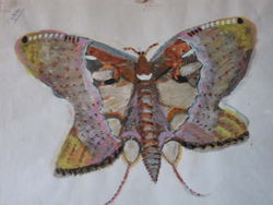 ಅಲ್ಲಿನ ಕಲಾಕೃತಿಗಳ ಬಗ್ಗೆ ನನ್ನ ಕುತೂಹಲ ಕಂಡ ಗೋವಿಂದಯ್ಯನವರು ‘ನನ್ನ ಭಾವನ ಮಡದಿ ಭಾರತಿ, ಮನೆಯೊಳಗೆ ಬಂದ್ಹೋಗೊ ಚಿಟ್ಟೆಗಳ ಚಿತ್ರ ಬಿಡಿಸಿದ್ದಾಳೆ. ಏ ತಾಯಿ! ನೀನು ಮಾಡಿರೊ ಪೇಂಟಿಂಗ್ ತೋರಿಸು’ ಎಂದರು. ಆಗ ಆಕೆ ಸಂಕೋಚ ಪಟ್ಟುಕೊಂಡು ಒಳಗಿಂದ ಒಂದು ಚಿತ್ರ ತಂದರು. ಗೀರುಗಳುಳ್ಳ ಲೆಡ್ಜರ್ ಹಾಳೆಯಲ್ಲಿ ಬಿಡಿಸಿದ ಚಿಟ್ಟೆಯ ಆ ಚಿತ್ರ ಅಪೂರ್ವವಾಗಿತ್ತು. ಸಮುದ್ರದ ಜಲಚರದಂತಿದ್ದ ಅದು ಮೂರು ಕಡೆ ಅರೆನಿಮೀಲಿತ ನೇತ್ರಗಳನ್ನು ಒಳಗೊಂಡಿತ್ತು. ಗಾಳಿಪಟದಂತೆ ಬಾಲಂಗೋಚಿಯನ್ನು ಹೊಂದಿತ್ತು. ಅದರೆ ರೆಕ್ಕೆಯ ನಕ್ಷೆಯು ಬೇಂದ್ರೆಯವರ ಪಾತರಗಿತ್ತಿ ಪಕ್ಕಪದ್ಯದ ಬಣ್ಣನೆಯನ್ನು ಮೀರಿಸುವಂತಿತ್ತು. ನಮ್ಮ ಪ್ರತಿಕ್ರಿಯೆ ಕಂಡ ಬಳಿಕ ಒಳಗಿಂದ ಒಂದೊಂದೇ ಚಿತ್ರಗಳು ಹೊರಬರತೊಡಗಿದವು. ನೋಡುತ್ತ ಹೋದಂತೆ ಹಲವಾರು ಬಣ್ಣಗಳ ನೂರಾರು ಡಿಸೈನುಗಳ ಚಿಟ್ಟೆಗಳು ಸೋಜಿಗದಲ್ಲಿ ಅದ್ದಿದವು. ಈ ಸೋದರಿ ಮನೆಯೊಳಗೆ ಬಂದು ಗೋಡೆಗಳ ಮೇಲೆ ಕುಳಿತುಕೊಳ್ಳುತ್ತಿದ್ದ ಚಿಟ್ಟೆಗಳನ್ನೆಲ್ಲ ಇಲ್ಲಿ ಹಿಡಿದುಹಾಕಿದ್ದರು.