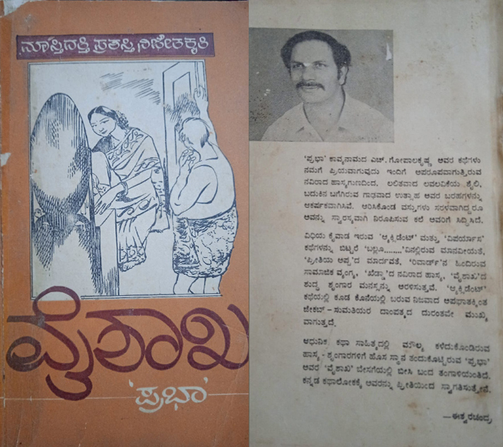 …….ಪುಸ್ತಕಕ್ಕೆ ಹೆಸರು ಇಡಬೇಕಿತ್ತಲ್ಲ. ಮುಖಪುಟ ಬರೆದಾಗ ಪುಸ್ತಕದ ಹೆಸರೂ ಕೊಟ್ಟರೆ ಕಲರ್ ಕಾಂಬಿನೇಷನ್ಗೆ ಉತ್ತಮ ಎನ್ನುವ ಅಭಿಪ್ರಾಯ ಬಂದಿತ್ತು. ನನ್ನ ಕತೆಗಳ ಹಸ್ತಪ್ರತಿಯ ಒಂದು ಕತೆ ಹೆಸರು ವೈಶಾಖ ಎಂದು. ಈಗಾಗಲೇ ಚದುರಂಗ ಅವರು ವೈಶಾಖ ಎನ್ನುವ ಕಾದಂಬರಿ ಬರೆದು ಅದು ಪ್ರಖ್ಯಾತವಾಗಿತ್ತು. ನನ್ನ ಸಂಕಲನಕ್ಕೂ ವೈಶಾಖ ಹೆಸರು ಇಟ್ಟರೆ ಓದುಗರು ಕನ್ಫ್ಯೂಸ್ ಮಾಡಿಕೊಳ್ಳುವ ಸಂಭವ ಹೆಚ್ಚಿರುತ್ತೆ ಅನಿಸಿತು. ಆದರೂ ಚದುರಂಗರ ವೈಶಾಖ ಕಾದಂಬರಿಯು. ನನ್ನದು ಸಣ್ಣ ಕಥಾ ಸಂಗ್ರಹ, ಅದರಿಂದ ಹೆಸರು ಅದೇ ಇರಲಿ ಎನ್ನುವ ತೀರ್ಮಾನ ತೆಗೆದುಕೊಂಡೆ…! ಹೆಸರು ವೈಶಾಖ ಆಯ್ತಾ? ಹೆಸರು ನನ್ನ ಗೂಢ ನಾಮವೇ ಇರಲಿ, ಅದರಿಂದಲೇ ನಾನು ಖ್ಯಾತನಾಗಿರುವುದು ಅನಿಸಿತಾ…? ಇದುವರೆಗೂ ಕಾಪಾಡಿಕೊಂಡು ಬಂದಿದ್ದ ಒಂದು ಗುಟ್ಟು ನಿಮಗೂ ಓದುಗ ಮಹಾಪ್ರಭುಗಳಿಗೂ ಸಹ ರಿವೀಲ್ ಮಾಡುತ್ತಾ ಇದ್ದೇನೆ. ಪ್ರಭಾ ಇದು ನನ್ನ ಹಲವು ಗೂಢ ನಾಮಗಳಲ್ಲಿ ಒಂದು, ಹೆಚ್ಚು ಫೇಮಸ್ ಆಗಿರುವುದು…!