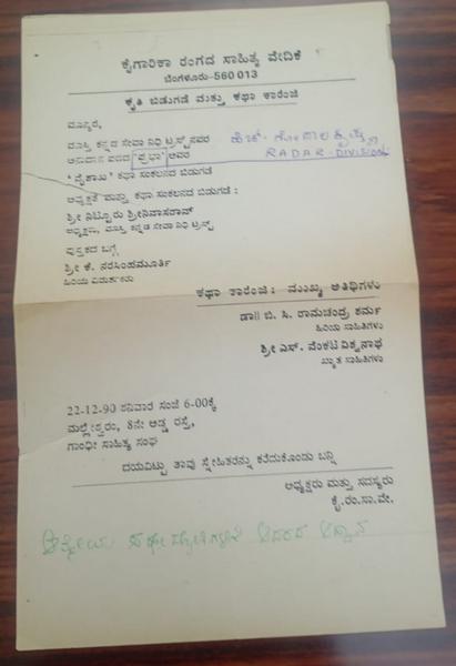 ಶರ್ಮರ ಮುಂದೆ ನಿಂತು ನಾನೂ ಶರ್ಮ ಅಂತ ಹೇಳಬಹುದೇ ಎನ್ನುವ ಜಿಜ್ಞಾಸೆ ಆಗ ಕಾಡಲಿಲ್ಲ. ಎದ್ದು ನಿಂತು ಸಾರ್ ನಾನು ಹೀಗೆ ಹೀಗೆ. ಒಂದು ಕಥಾ ಸಂಕಲನ ಮಾಸ್ತಿ ಪ್ರಶಸ್ತಿ ನರಸಿಂಹ ಮೂರ್ತಿ…. ಅಂತ ಒಂದಕ್ಕೊಂದು ಲಿಂಕ್ ಕೊಟ್ಟುಕೊಂಡು ಅಲ್ಲಿ ಅವರ ಮುಂದೆ ನಾನು ನಿಂತಿರುವ ಕಾರಣ ವಿವರಿಸುತ್ತಾ ಇದ್ದೆ ತಾನೇ? ಅವರು ಕೂಡಿ ಅಂದರು. ಕೂತೆ. ಕೈಯಲ್ಲಿ ನನ್ನ ಪುಸ್ತಕದ ಪ್ರತಿ ಇತ್ತು. ಅದನ್ನು ಮುಂದಕ್ಕೆ ಚಾಚಿದೆ. ತೆಗೆದುಕೊಂಡರು. ನೀವು ಸಣ್ಣ ಕತೆಗಳ ಬಗ್ಗೆ ಮಾತಾಡಬೇಕು ಸರ್ ಅಂದೆ. ಹೀಗೆ ಹೀಗೆ ಅಂತ ಕಾರ್ಯಕ್ರಮದ ರೂಪು ರೇಷೆಗಳನ್ನು ವಿವರಿಸಿದೆ. ಆಗಲಿ ಎಂದರು. ಕಾಫಿ ಬಂತು. ಅದನ್ನು ಮುಗಿಸಿ ನಮಸ್ಕಾರ ಇನ್ವಿಟೇಷನ್ ರೆಡಿ ಆದಮೇಲೆ ಮತ್ತೆ ಬರ್ತೀನಿ ಅಂತ ಹೊರಟೆ. ಪುಸ್ತಕದ ಮಾರಾಟ ಹೇಗೆ ಮಾಡ್ತೀರಿ ಅಂತ ಕೇಳಿದರು. ಅದನ್ನು ಅವರಿಗೆ ವಿವರಿಸಿದೆ. ಇದರ ಬಗ್ಗೆ ನಿಮಗೆ ಆಮೇಲೆ ಹೇಳುತ್ತೇನೆ.