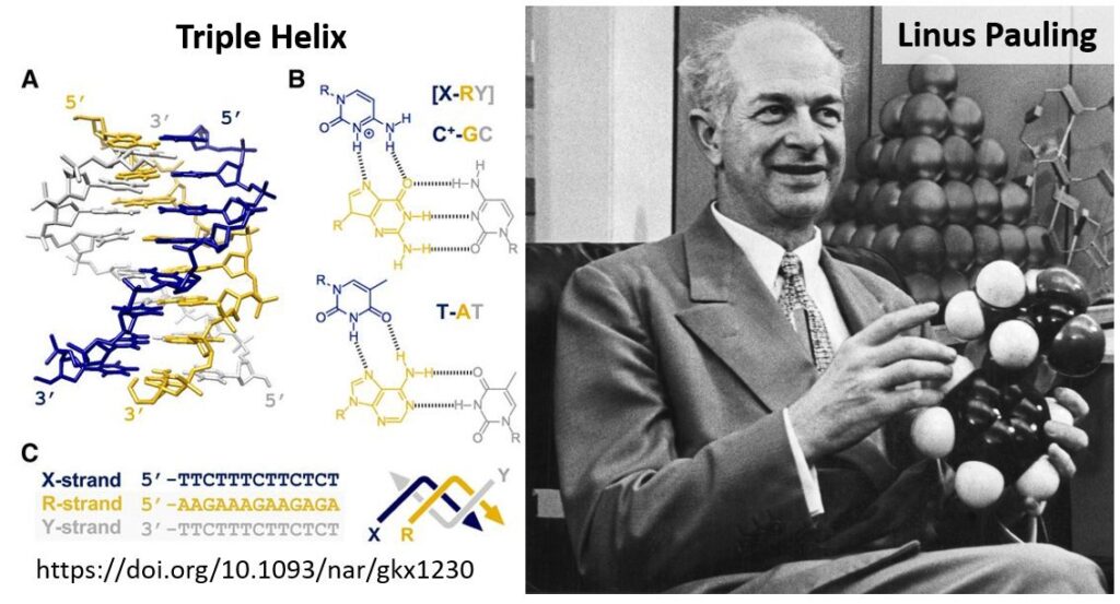 ಹೀಗೆ, ೧೯೫೦-೫೧ರಲ್ಲಿ ಪಾಲಿಂಗ್ ಮತ್ತು ತಂಡ ಕ್ಯಾಲಿಫೋರ್ನಿಯಾದಲ್ಲಿ ಥಿಯರಿ ಬಳಸಿ ಡಿಎನ್ಎ ಪ್ರತಿಮೆಯನ್ನು ರೂಪಿಸಲು ಪ್ರಯತ್ನಿಸುತ್ತಿದ್ದರೆ, ಕೇಂಬ್ರಿಜ್ನಲ್ಲಿ ವಾಟ್ಸನ್-ಕ್ರಿಕ್ ಸಹ ಅದೇ ಪ್ರಯತ್ನದಲ್ಲಿ ತೊಡಗಿದ್ದರು.